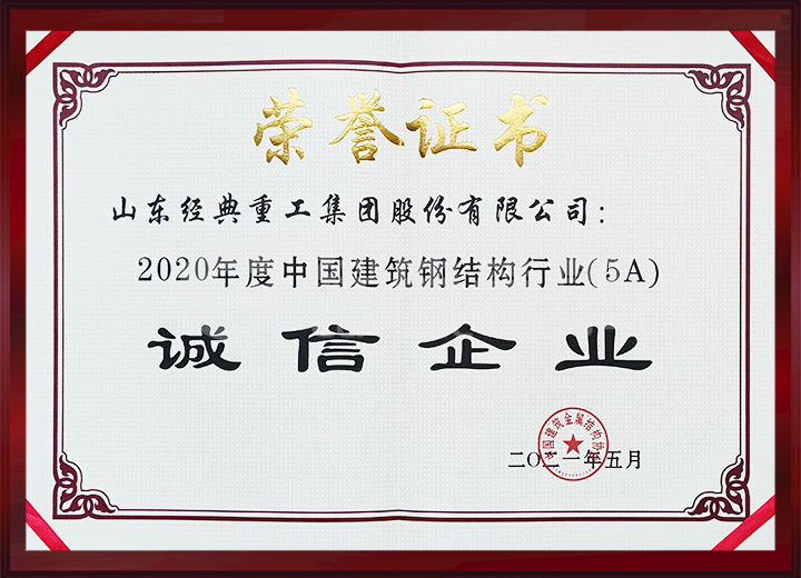 經典建設公司被授予2014-2016年中國建筑鋼結構行業推薦品牌信譽AAA企業。