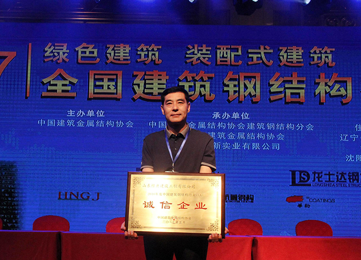 公司榮獲2016年度中國建筑鋼結構行業(5A)誠信企業稱號。