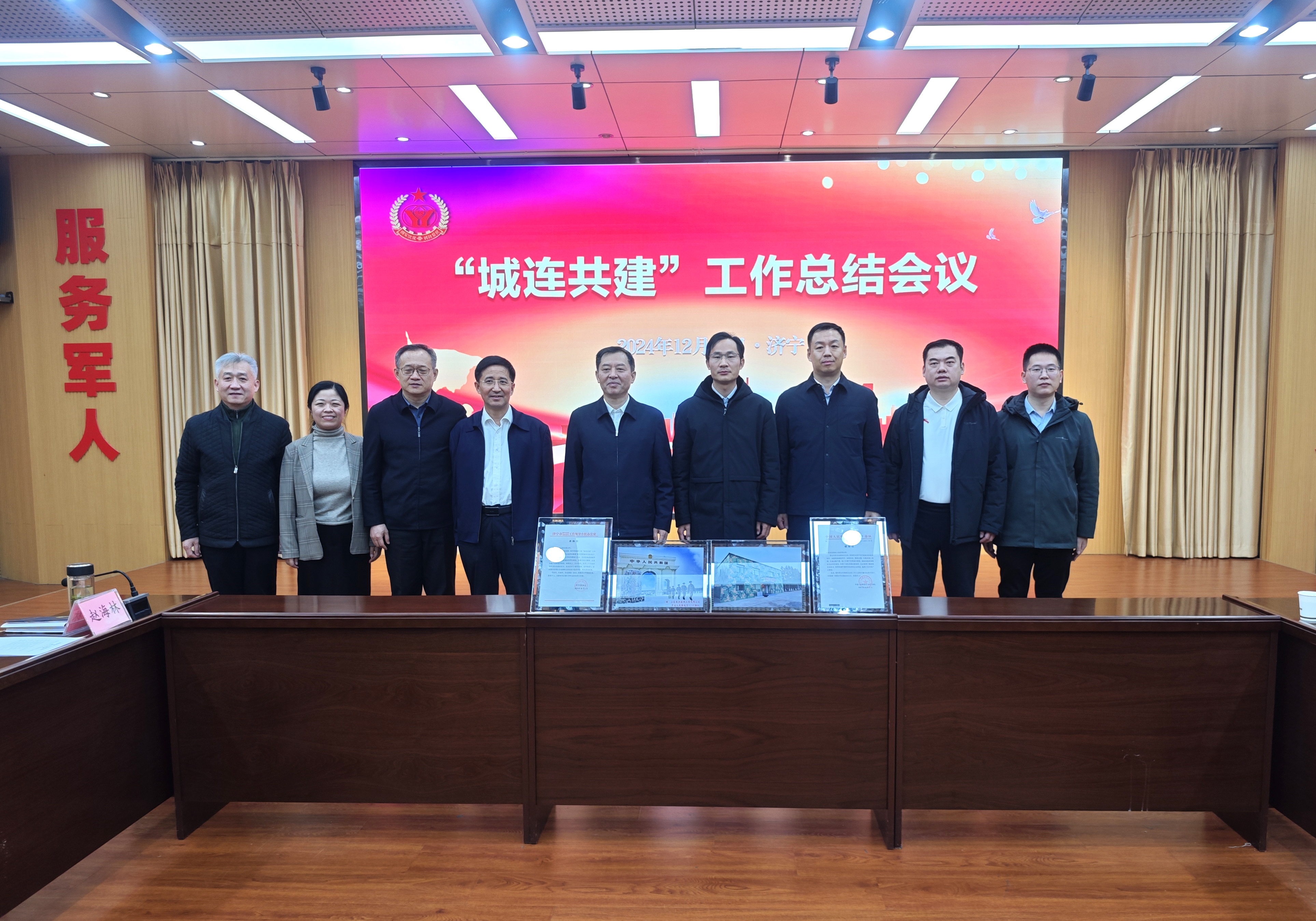 濟寧市“城連共建”工作總結會議召開,濟寧市人民政府副市長、市公安局局長、一級巡視員李海洋現場頒發了中國人民解放軍某部寫給山東經典建設工程有限公司的感謝信、濟寧市雙擁辦的表揚信。”