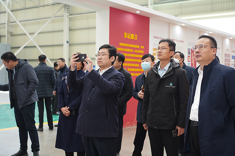 2月23日,新泰市委常委、組織部部長、統戰部部長梁欣和市政協副主席、工商聯主席殷玉梅帶領工商聯考察團到經典集團參觀調研。