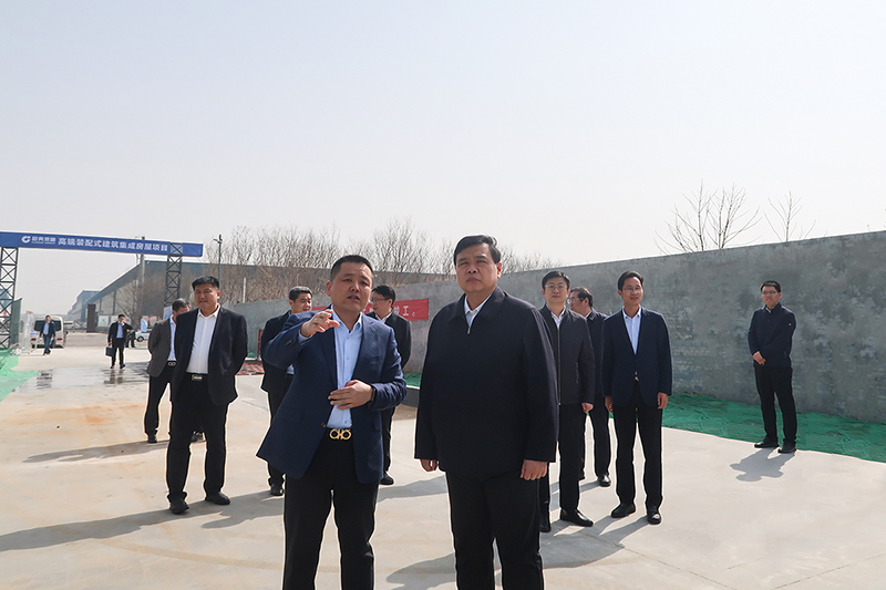 3月8日,濟寧市委常委、市紀委書記、市監委主任朱朝輝在兗州區委書記王慶的陪同下,調研經典集團高端裝配式建筑集成房屋項目建設情況。