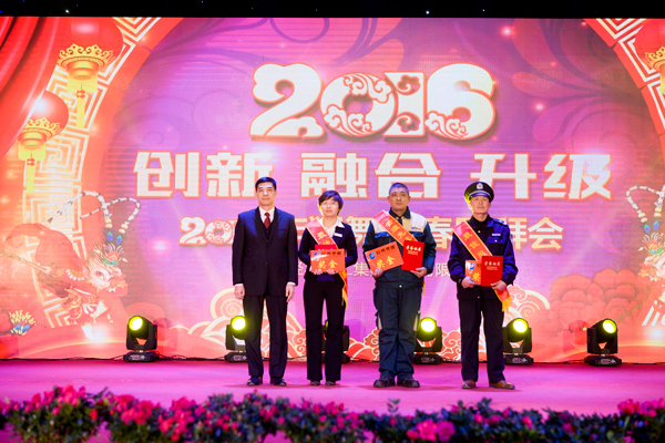 經典集團董事長苗樹文首先致新春賀詞2015年集團取得的成績進行了總結,鼓舞全體員工精誠團結、奮發有為,實現2016年經典產業轉型升級創新發展融合發展,并向全體參會人員和社會各界朋友致以新年的問候。總經理杜福生宣讀了《關于2015年度優秀員工和最佳團隊的表彰決定》,通過表彰獎勵,營造了廣大員工學習先進、爭當楷模的濃厚氛圍。