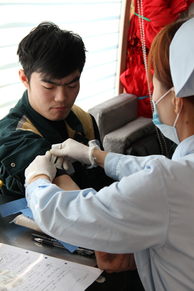 經(jīng)過閱讀學(xué)習(xí)獻(xiàn)血基本常識,填寫登記表,例行體檢幾個(gè)環(huán)節(jié)后,志愿者們按順序登上了獻(xiàn)血車。他們在獻(xiàn)血時(shí)個(gè)個(gè)積極勇敢,情緒穩(wěn)定,臉上洋溢著自豪的笑容,獻(xiàn)血結(jié)束后,在現(xiàn)場領(lǐng)取了濟(jì)寧市中心血站發(fā)放的無償獻(xiàn)血證。本次獻(xiàn)血活動有166名職工自愿報(bào)名參加,其中趙康、吳振興等志愿者更是有多次無償獻(xiàn)血的經(jīng)歷。