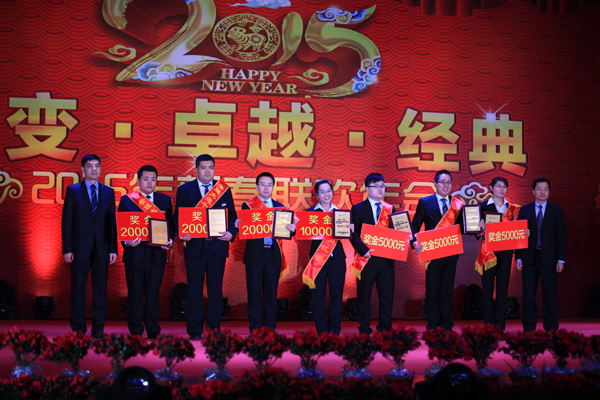 經典集團董事長苗樹文發表了熱情洋溢的講話,簡要回顧了2014年公司取得的成績,鼓舞公司員工精誠團結、奮發有為,穩步實現2015年公司科學發展、創新發展,并向全體參會人員及家屬致以新年的問候。隆重表彰了2014年涌現出的先進個人和先進集體,營造了人人學習先進、人人爭當楷模的濃厚氛圍。