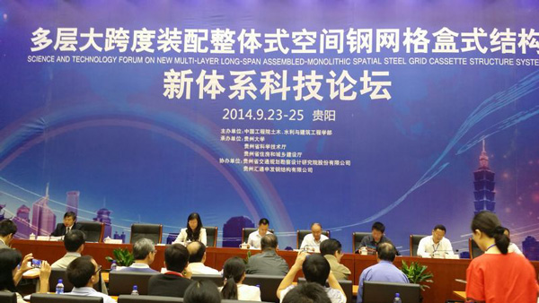9月24日至25日,由中國(guó)工程院土木、水利與建筑工程學(xué)部主辦,貴州大學(xué)、貴州省科技廳、貴州省住建廳等承辦的“多層大跨度裝配整體式空間鋼網(wǎng)格盒式結(jié)構(gòu)新體系科技論壇”在貴陽(yáng)開幕,論壇邀請(qǐng)中國(guó)工程院周豐峻院士、杜彥良院士、肖緒文院士、郭仁忠院士以及中國(guó)工程院土木、水利與建筑工程學(xué)部學(xué)術(shù)委員和來自國(guó)內(nèi)各知名高校、科研院所、設(shè)計(jì)院、鋼結(jié)構(gòu)行業(yè)知名企業(yè)二百余人參加,經(jīng)過現(xiàn)場(chǎng)考察、主題報(bào)告、學(xué)術(shù)交流研討,形成對(duì)中國(guó)工程院士馬克儉“盒式結(jié)構(gòu)新體系”的論證意見。意見認(rèn)為:該體系以“產(chǎn)、學(xué)、研”結(jié)合方式進(jìn)行科學(xué)技術(shù)成果的研發(fā)與轉(zhuǎn)化,是理論與實(shí)踐相結(jié)合的良好形式,是落實(shí)“實(shí)施創(chuàng)新驅(qū)動(dòng)發(fā)展戰(zhàn)略”的有效舉措。該項(xiàng)目取得了良好的社會(huì)經(jīng)濟(jì)環(huán)境效益,有良好的推廣應(yīng)用前景,經(jīng)典集團(tuán)董事長(zhǎng)苗樹文應(yīng)邀參加“盒式結(jié)構(gòu)新體系”研討,并與馬克儉、肖緒文等院士互動(dòng)學(xué)習(xí)交流,并觀摩了中國(guó)南車集團(tuán)貴陽(yáng)新產(chǎn)業(yè)基地大自然工業(yè)園芯料生產(chǎn)廠房、貴州省博物館新館等“盒式結(jié)構(gòu)新體系”應(yīng)用示范單位。