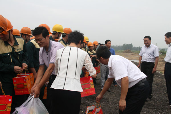 8月7日上午,兗州區(qū)委常委宣傳部長初建偉、區(qū)總工會主席王福偉率領(lǐng)區(qū)總工會領(lǐng)導班子一行來到經(jīng)典醫(yī)療器械項目工程現(xiàn)場,看望了辛苦奮戰(zhàn)在一線的集團職工,把一批防暑降溫慰問品親自交到職工手中,深切表達了對一線職工的慰問與關(guān)懷。新兗鎮(zhèn)黨委書記張建芬,經(jīng)典集團總經(jīng)理杜福生等領(lǐng)導陪同慰問。