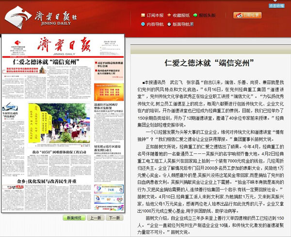 濟寧日報:經典集團弘揚優秀傳統文化,樹員工道德至上新風