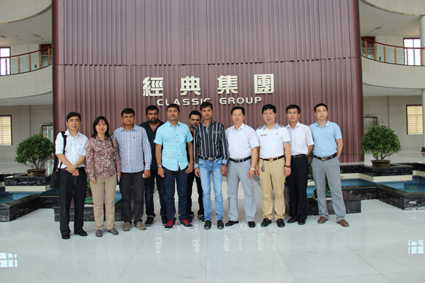 7月5日上午印度客商來經典集團參觀考察并洽談合作事宜客人一行在集團公司總經理杜福生經典建設公司經理鄭利昌的陪同下一起參觀了公司生產車間現場對我們的生產流程及加工工藝進行了細致了解并與技術人員現場交流印度客人對我公司的規模及加工實力做出充分肯定并達成初步合作意向