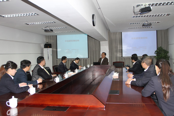 寶鋼集團賀總在會議室講解中國鋼結構行業(yè)相關專業(yè)知識