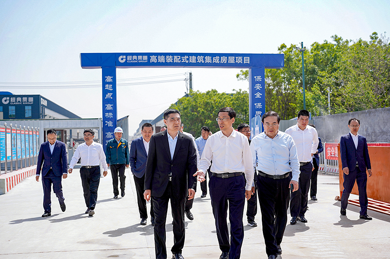 5月1日,濟寧市兗州區(qū)委副書記、區(qū)長王營一行到高端裝配式建筑集成房屋項目現(xiàn)場調(diào)研,指導(dǎo)省重大項目建設(shè)、安全生產(chǎn)等有關(guān)工作。兗州工業(yè)園區(qū)黨工委書記、管委會主任王智,經(jīng)典集團(tuán)董事會主席苗樹文,董事長史振華,區(qū)政府辦、發(fā)改局、新兗鎮(zhèn)主要負(fù)責(zé)人等陪同調(diào)研。